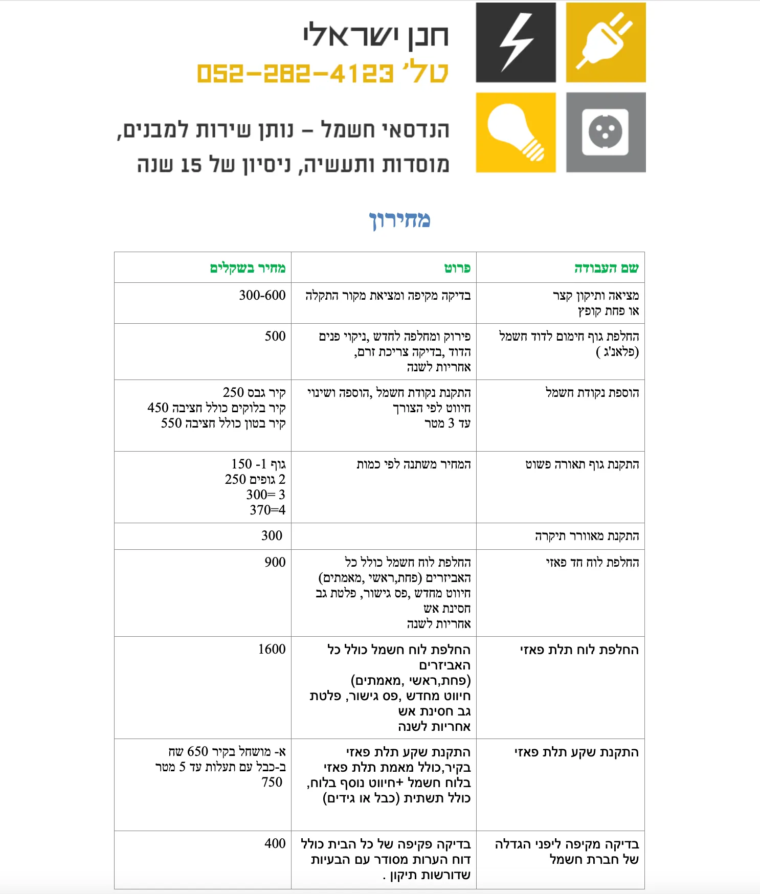 חנן ישראלי, הנדסאי חשמל בעל נסיון של יותר 20 שנים בתחום,